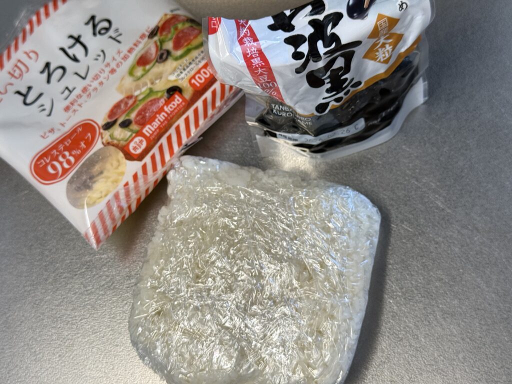 ご飯の上にチーズとバターをドーン!これが黒豆を宇宙の彼方へ連れていくブースターになるんだよぉぉ!!