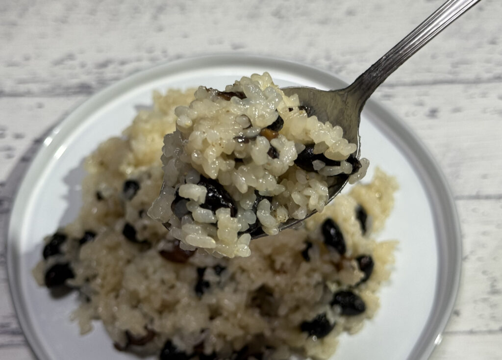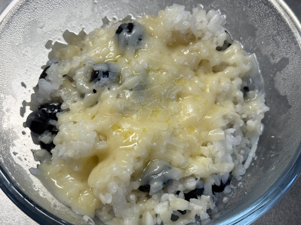 甘い黒豆と、とろけるチーズとバターをレンジで激しく融合させる「ブラックホール黒豆激情リゾット」!!