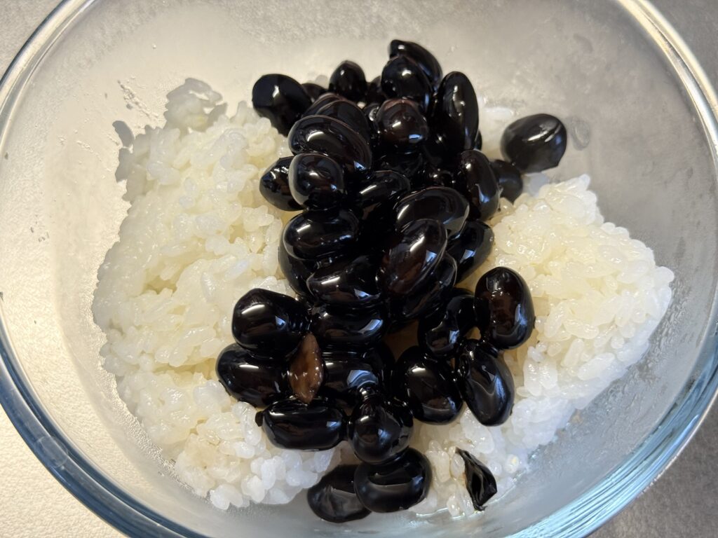 甘い黒豆と、とろけるチーズとバターをレンジで激しく融合させる「ブラックホール黒豆激情リゾット」!!
