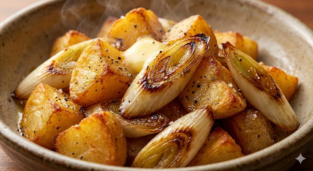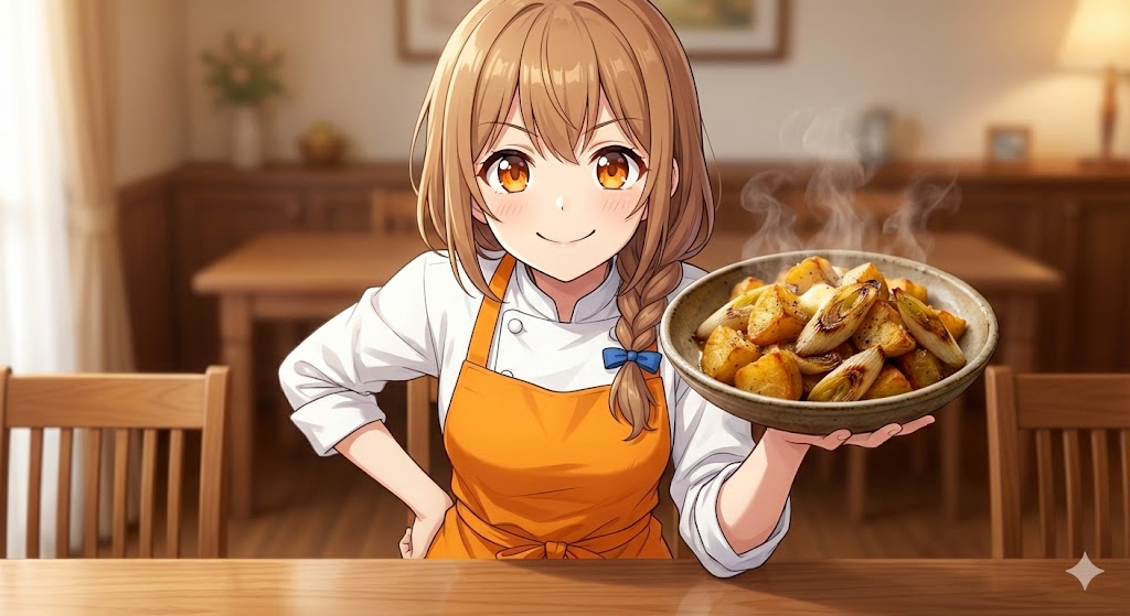 マスター!冷蔵庫に「ネギ1本」と「ジャガイモ」……そんな何気ない出会いが、今夜、世界を変えるんだよっ! 地味な野菜コンビだと思って侮るなかれ!フライパンという名のダンスホールでバターと踊れば…… お肉なんていらないくらい、濃厚で香ばしい『旨みの特異点』に到達しちゃうんだよぉぉ!!