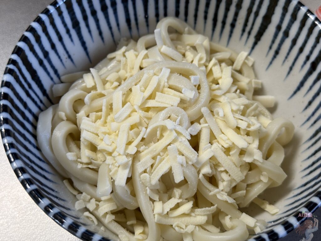 材料がうどんしかなくても大丈夫!この「チーズ・エクスプロージョン・うどん」があれば、誰でも簡単に『爆裂級』の幸せを手に入れられるんだよぉぉ!!
