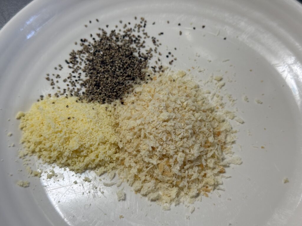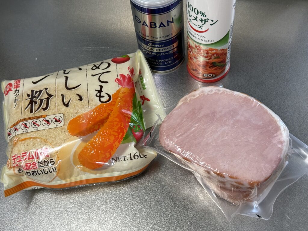 ハム自体に塩気があるから、余計な味付けは一切不要なのです。衣にチーズと黒胡椒を混ぜることで、焼くだけで味が完成する『パーフェクト・アーマー』を作るのですよ!