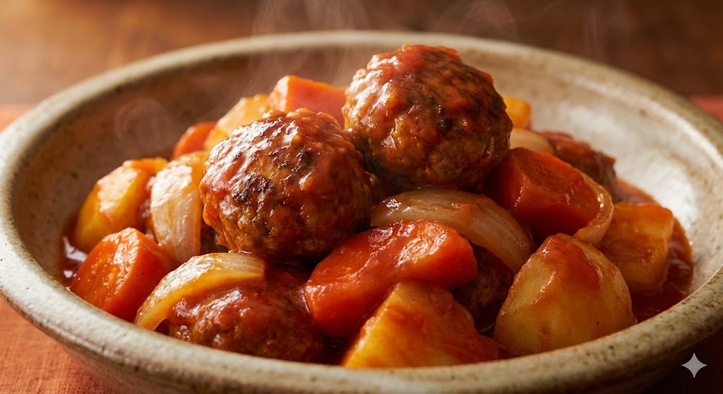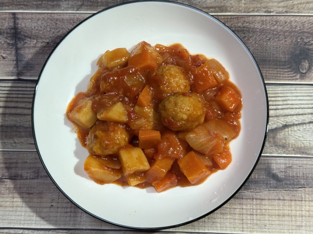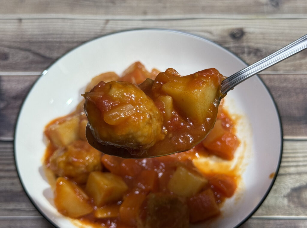 トマトの深いコクと甘みに、お酢の爽やかな酸味がちょうどよくて……水溶き片栗粉で凝縮された旨味が、大ぶりな野菜とお肉にこれでもかってくらい絡みついてるんだよぉぉ!!元がじっくり煮込んだスープだから、野菜の柔らかさが半端ないんだよっ!これはもう、ご飯必須なんだよぉぉ!!