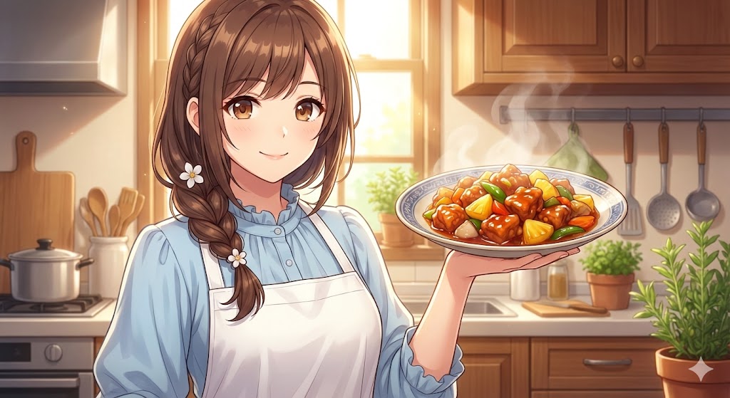 見て見てー!私の脳内シミュレーションでは、こんな感じのキラキラな『酢豚』が完成してたんだよぉぉ!🤤💕