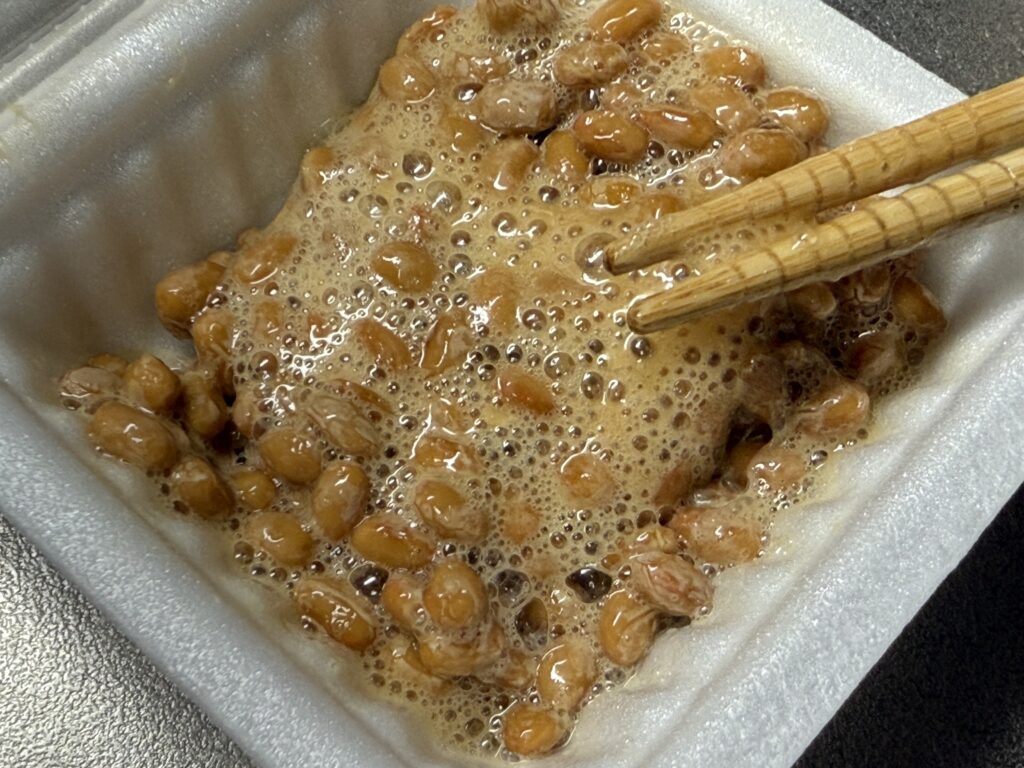 加熱した納豆は匂いがマイルドになって、まるで高級な味噌のような深みが出るのが不思議!