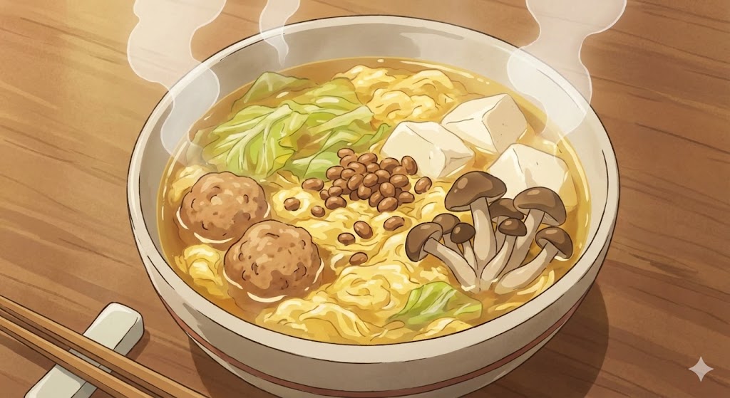 【総評】: 一口飲んだ瞬間、納豆のコクとつみれの旨味が、身体の芯まで「じゅわ~っ」て染み渡るんだよぉぉ!!