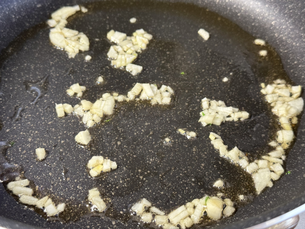 - 覚醒の香出し: フライパンにごま油とにんにくを入れ、弱火でじっくり香りを立たせる。この時点でビールを空けたくなるのを我慢するんだよぉぉ!!