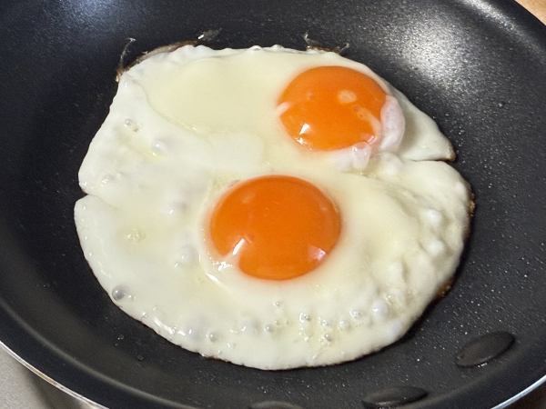 フライパンで目玉焼きを作ります。