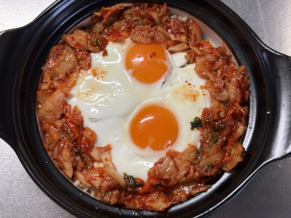 熱々の器から立ち上るチーズとキムチの香りは、まさに飯テロです。