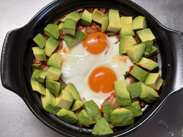 この甘辛いキムチのシャキシャキ感に、アボカドの濃厚なクリーミーさが絡み合って…口の中がカオスなのに完璧な調和。まさに闇鍋!