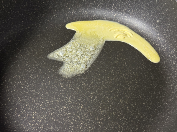 フライパンにバター(大さじ1)を入れて火にかけます。