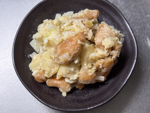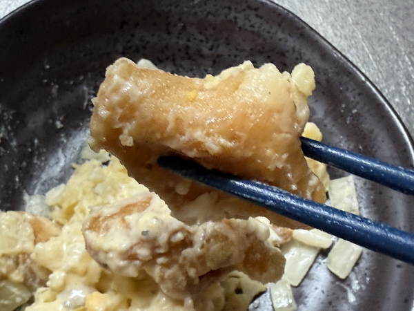 ねっとり濃厚なポテトの中に、ハイカロリーな唐揚げがゴロゴロと潜んでいます。
