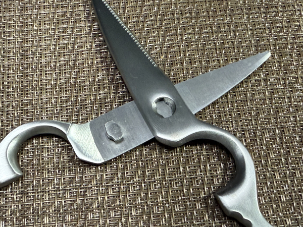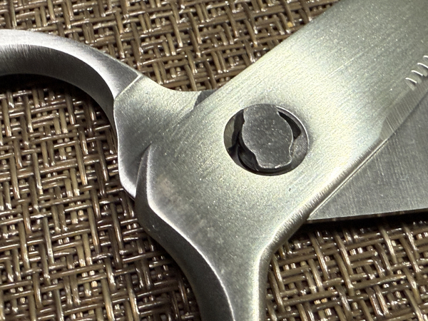 普通のキッチンバサミって、つなぎ目の部分(カシメ)に茶色い汚れとかサビが溜まりません?あれ、見るたびにテンション下がりますよね。