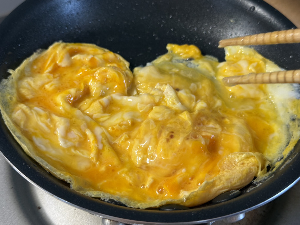 半熟になるよう、ざっくりと大きくかき混ぜます。