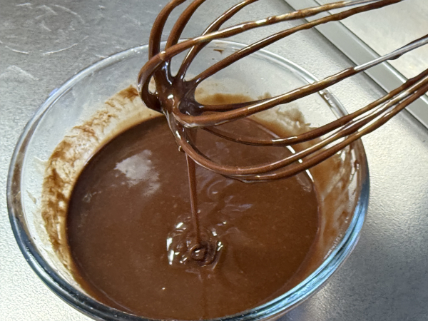 - 生命と闇の融合:混ぜた生地のもとに溶かしたチョコレートソースをよく混ぜ合わせます。
