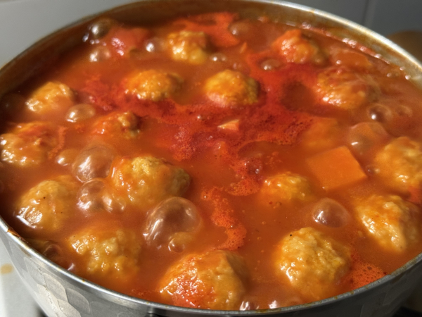- スープが沸騰したら、肉団子を投入!形が崩れないよう、優しく見守りながら10分ほど煮込むんだよ。