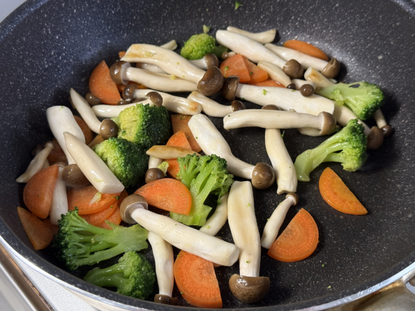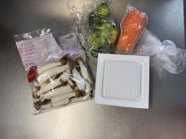 で、にんじん、ブロッコリー、きのこ類をザクザク切って投入!