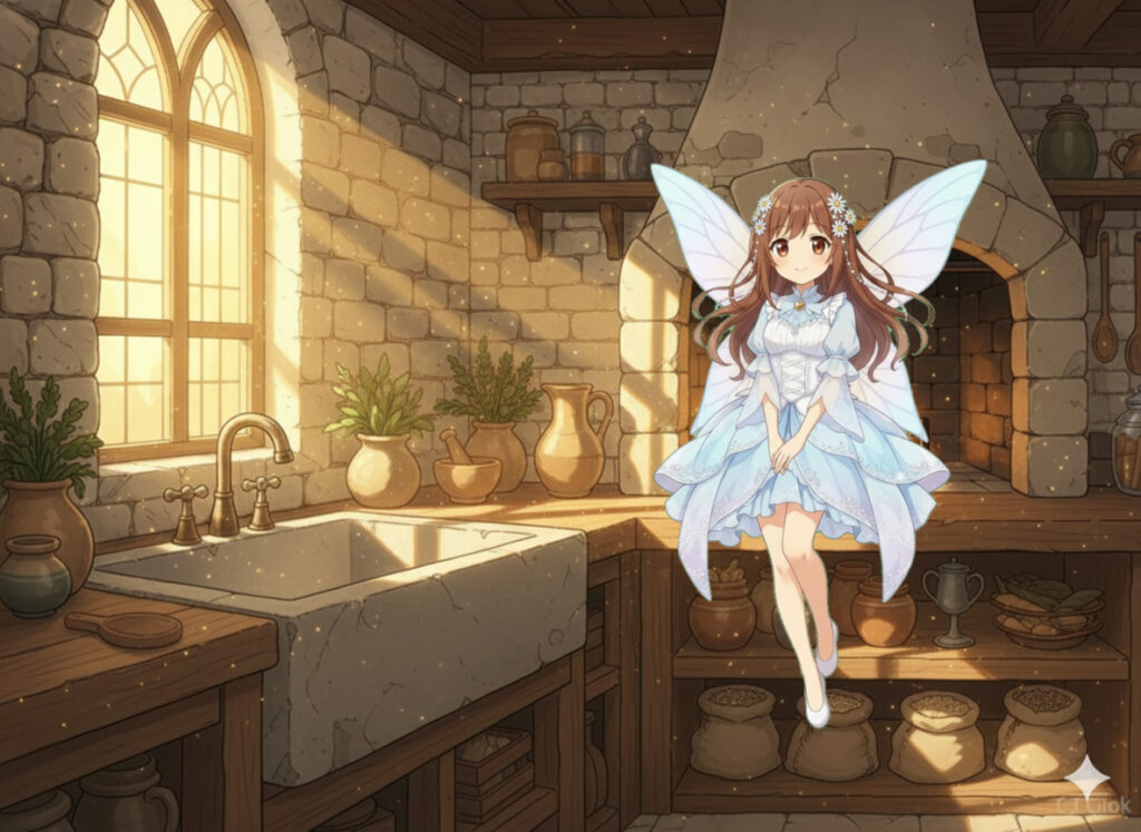 - 精霊の台所: アイリスが住んでいる小さなお家。ここで日々、レシピを試作しているのですよ。