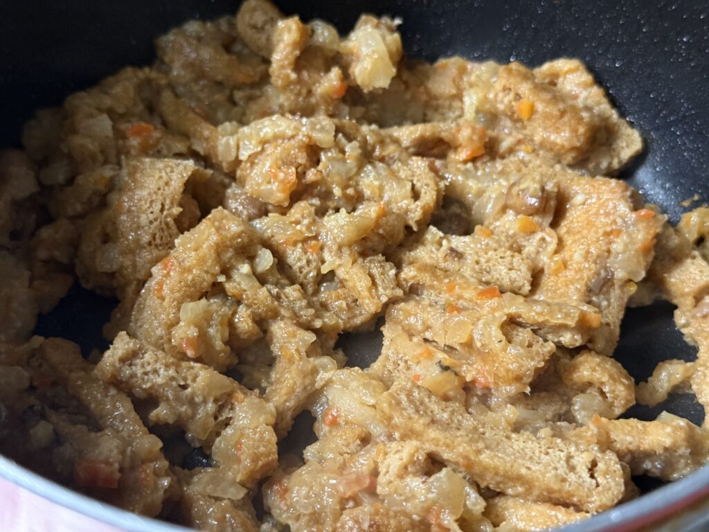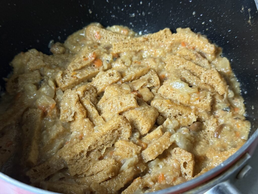 こいつらが、しもつかれの旨味汁をギュギュギュッ!と吸い取って、ぷっくり膨らんでいくんだよ!