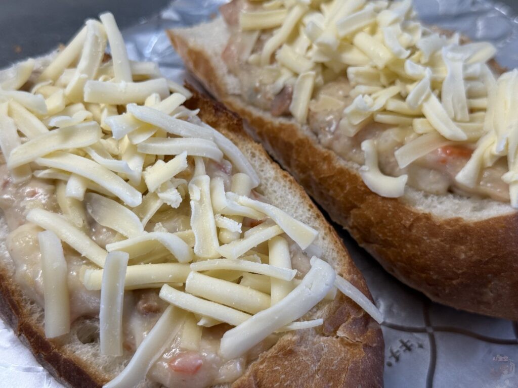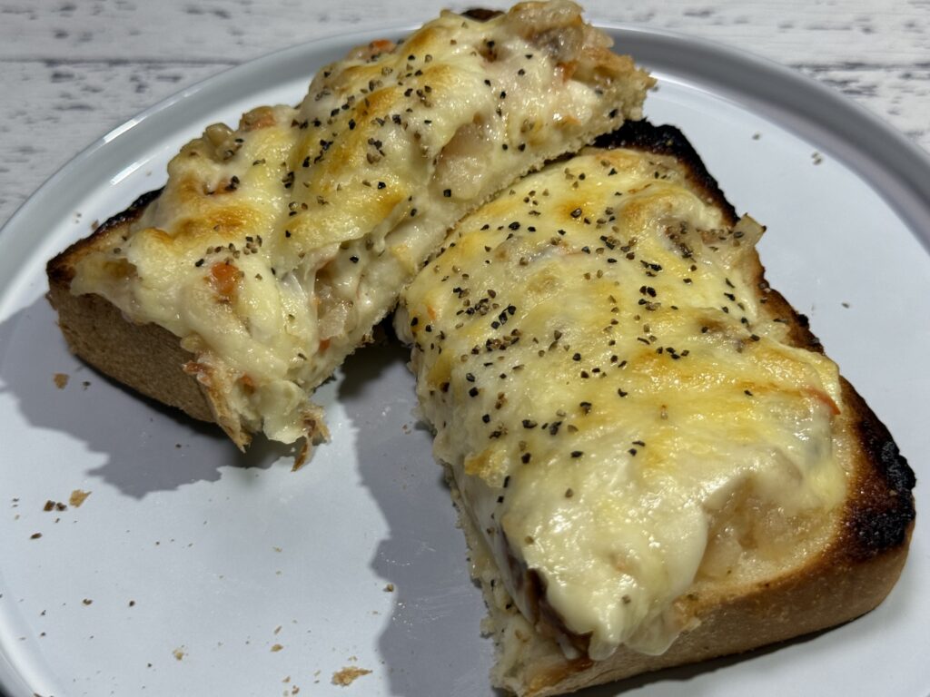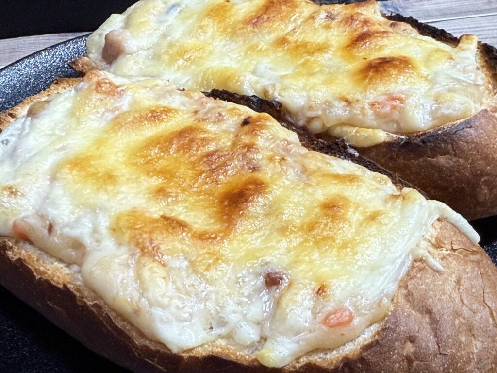 トースターでチーズにこんがり焼き目がつくまで焼いたら、勝利のファンファーレが鳴り響くよっ!!